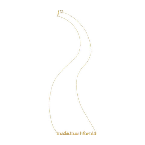 Jennifer Meyer’s “Made in California” necklace is sold out on Net-a-porter (and it appears, everywhere else.) The necklace was produced in collaboration with LACMA (LA County Museum of Art) and inspired by an Ed Ruscha print.