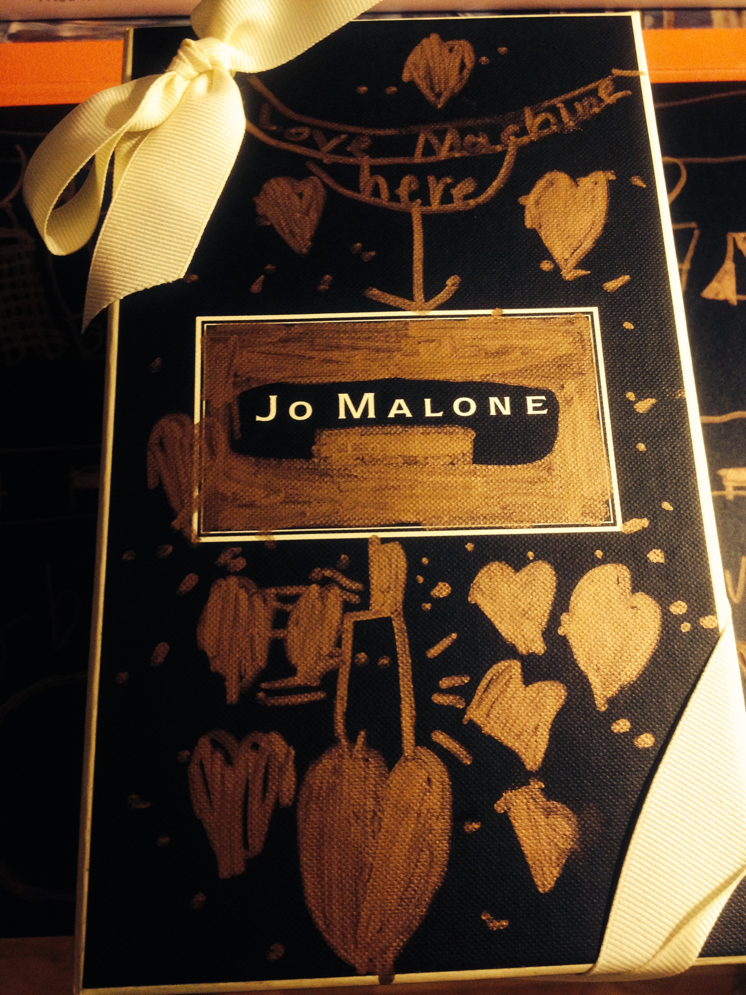 I’ve been so in love with J. Crew’s black boxes (Black boxes! Any Nikita fans out there?) So I asked Little McGifty to decorate the box and well, I’m her Mom, but I think the results were magic. She also went to town on a Jo Malone box.